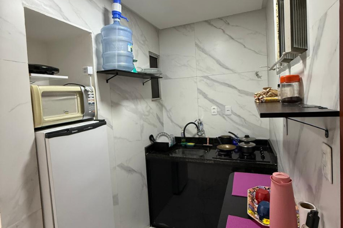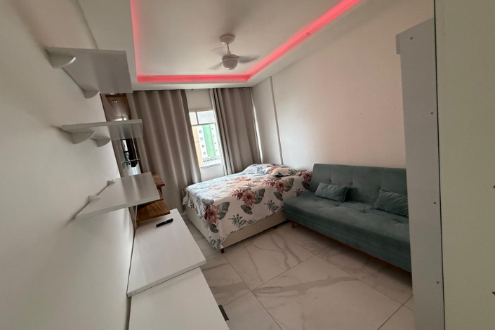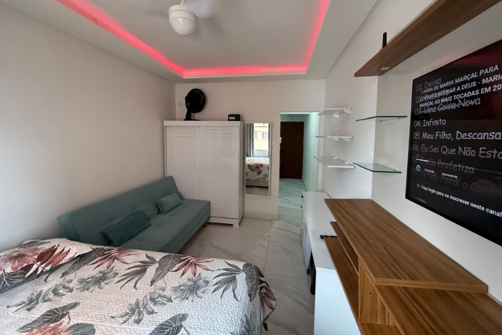 APARTAMENTO DECORADO E MOBILIADO, COMPOSTO POR UM QUARTO, UM BANHEIRO, UMA COZINHA, VAGA DE GARAGEM ROTATIVA E PORTARIA 24 HORAS.