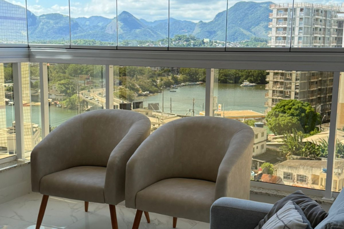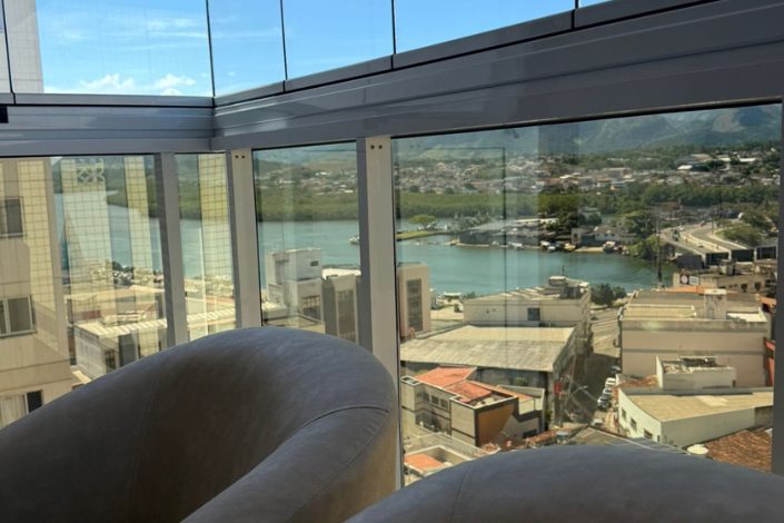 MARAVILHOSO APARTAMENTO DECORADO, FINO ACABAMENTO EM PORCELANATO, CLIMATIDO, UMA VISTA ESPETACULAR PARA O CANAL DE GURAPARI E A PRAIA DO MORRO.