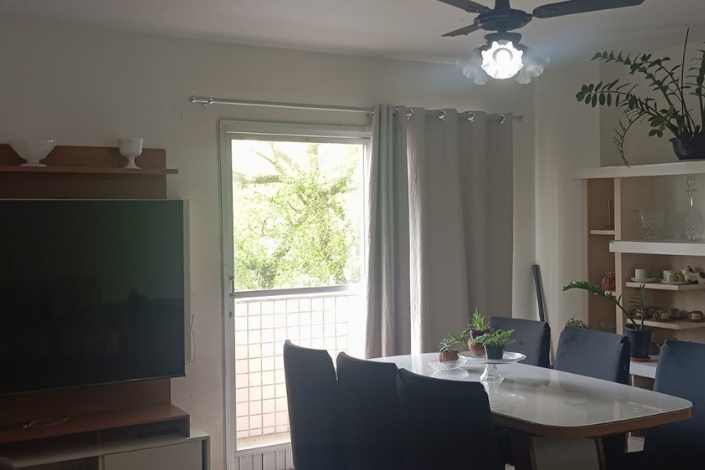 COMPOSTO POR UMA SALA DE ESTAR E JANTAR COM VARANDA , 2 QUARTOS, CONTANDO COM UMA DEPEDENCIA DE EMPREGADA PODENDO SER REVERSIVEL PARA MAIS UM QUARTO, 2 BANHEIROS SOCIAIS, 2 ELEVADORES, PORTARIA, 1 VAGA DE GARAGEM E PORTARIA 24 HORAS.
